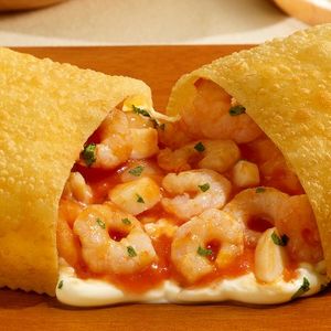 Massa Especial frita na Gordura Vegetal, 100g de Filé de Camarão, 100g de Queijo, Milho, cebola, cheiro verde e azeitona, Cream Cheese Phyladeufia, Molho Divino Especial, Cream Catupiry ou Cream Cheddar, (Grátis um refrigerante mini de 220ml de sua escolha)
