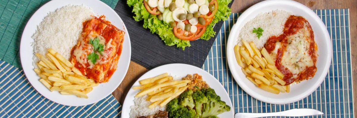 Deliciosa parmegiana de carne, Acompanha arroz branco, feijão separado e fritas + uma saladinha cortesia (somente a refeição tamanho grande que vai separado o feijão)