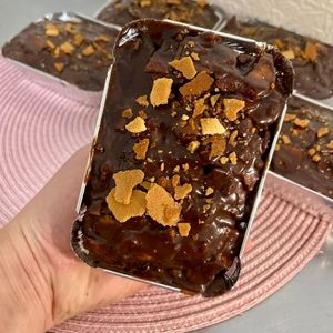 Brownie irresistível coberto com nosso delicioso brigadeiro 50% Cacau.