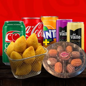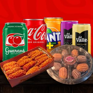 Combo Solteiro Plus - 25 Salgadinhos + 1 Refri/Suco Lata + 1 Roleta de Churros
