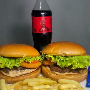 2 burguer Gálatas,200g de batatas sequinhas e crocantes,coca cola 600ml.