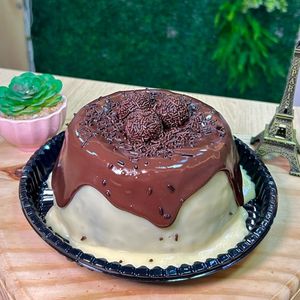 Massa de chocolate, vulcão de ninho, cobertura de brigadeiro gourmet + ninho, finalizado com docinhos de brigadeiros, serve 7 pessoas