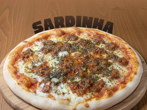 Experimente a Pizza de Sardinha!** Conheça nossa deliciosa pizza de sardinha, feita com a massa da casa e o nosso molho gourmet especial. Coberta com bastante muçarela e generosas sardinhas. Uma opção diferente e cheia de sabor para você.