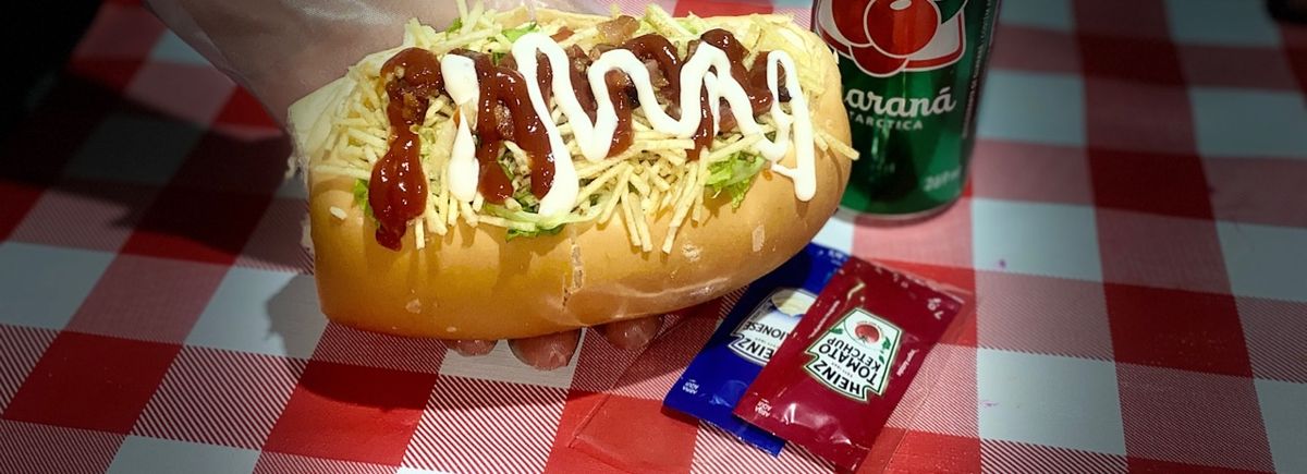 Pão de Hotdog, delicioso molho de tomate, maionese, catupiry, duas salsichas, muçarela, alface, vinagrete, milho e batata palha.