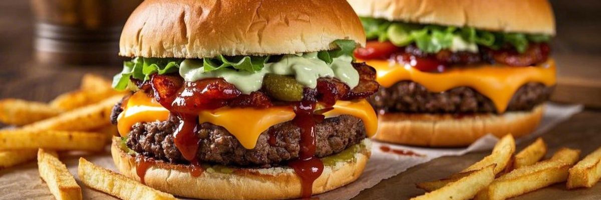 Hambúrguer artesanal smash com fatias de queijo cheddar, maionese da casa, cebola roxa picada, picles levemente adocicado, ketchup e mostarda. O clássico cheeseburger americano do jeito certo: simples, saboroso e sem frescura.
