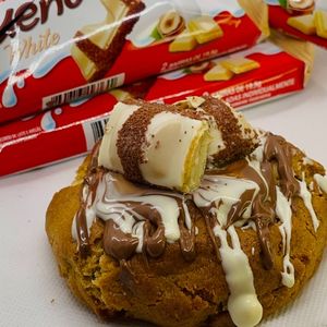 Um cookie premium com massa tradional e gotas de chocolate branco e preto nobres e recheio de chocolate branco em sua mais pura consistência com pedaços crocantes do verdadeiro kinder bueno! 🤎