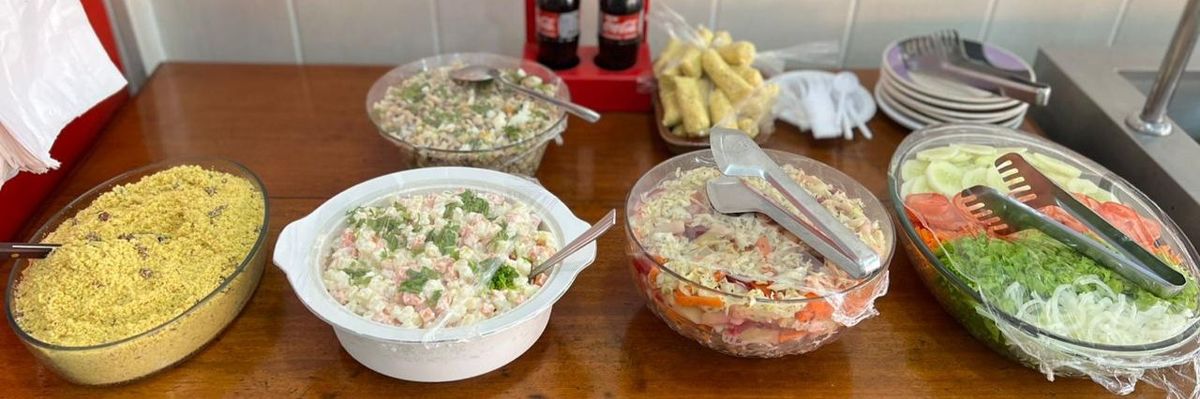 Acompanha arroz, feijão, macarrão e vinagrete.