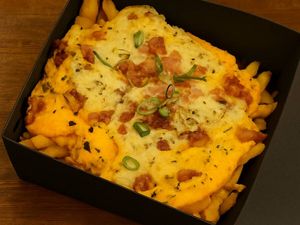 Batata frita crocante cobertas com uma mistura dos queijos mais amados: cheddar, provolone gratinadinho, mussarela derretida e parmesão por cima. E claro, aquele bacon crocante que todo mundo ama, com um toque de orégano e alecrim pra dar aquele charme final.