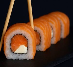 Base De Arroz Envolta Salmão E Creme Cheese Sobreposto