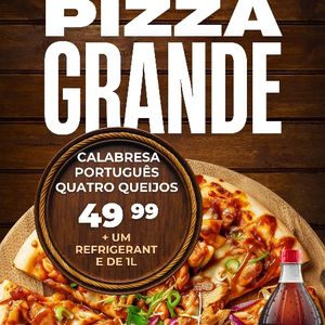 Promoção,Na compra de uma pizza grande ganha um refrigerante de 1 litro