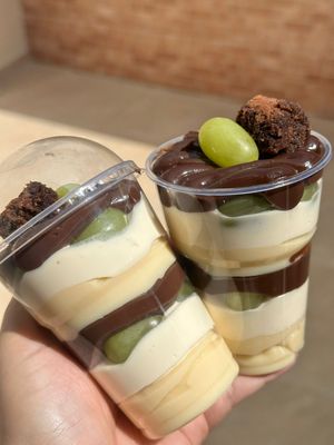 Mousse de ninho,brigadeiro de ninho,brigadeiro cremoso de chocolate e uvas verdes sem sementes