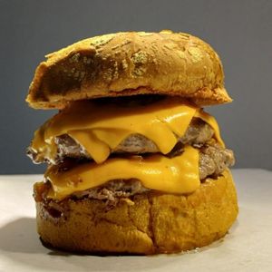 Dois hambĂșrgueres de 70g no pĂŁo australiano com cheddar cremoso, cebola caramelizada e bacon crocante.