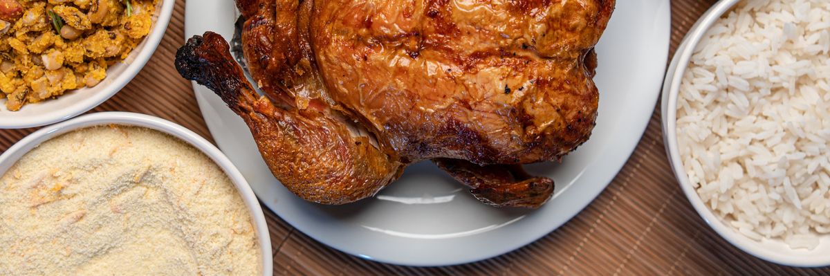 Sem acompanhamentos. Galeto assado ao forno, sugerido para até 6 pessoas.