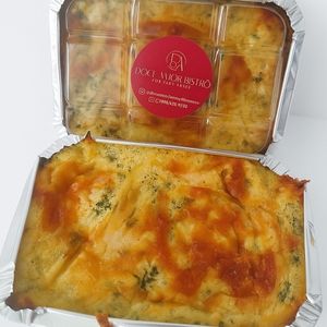 Massa de frango xadrez + a salada especial amor bistrô + 1 pote doce amor.( Serve 1 pessoa)