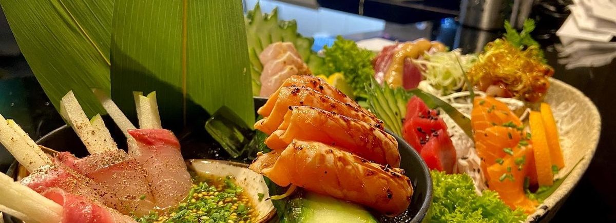 2 Sashimis de Salmão, 2 Sashimis de Atum Braseados 1 Gunkan de salmão Braseado. 2 Niguris de Salmão ( 1 Braseado com Cream cheese) 4 Hossomakis de Salmão, 4 Hot Rolls de kani. (1 maiones picante, 1 cream cheese 1 cream cheese com goiabada, 1 cream cheese com geleia de frutos vermelhos picante) 8 Uramakis. ( 4 De camarão tempurá picante, 4 salmão com cream cheese e cebola crispy) - Acompanha Wasabi e Gengibre * 2 Saches de molho Shoyu * 1 Hashis * 1 Molheiras