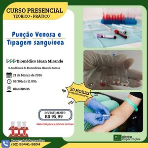 ✨ Curso teórico-prático, 100% presencial 🧪 Todo o material para a prática é fornecido pela empresa 📚 Certificado com 20 horas complementares 📅 21 de março de 2026 ⏰ 08h30 às 11h 📍 BioCURSOS 💰 Investimento: R$ 95,99 Perfeito para quem quer aprender, praticar e se destacar na área da saúde! 💉🧬