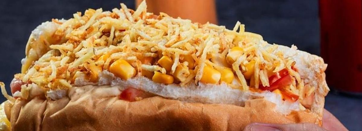 Linguiça, Milho, Ervilha, Cenoura, 1-ovo de codorna, Calabresa, Azeitona, Queijo ralado, Batata palha, Passas, Ketchup, Mostarda, Maionese da casa, cheddar.