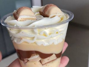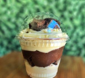 O encontro perfeito entre cremosidade e intensidade! Começamos com um creme de Ninho super leve e macio, seguido de um brigadeiro de chocolate belga cremoso. Na sequência, pedaços de brownie fofinho e chocolatudo, que trazem aquela explosão de sabor. Depois, mais uma camada de brigadeiro de chocolate belga , finalizado com creme de Ninho aveludado. No topo, pedaços extras de brownie e uma chuva de leite em pó Ninho, para transformar cada colherada em pura felicidade.
