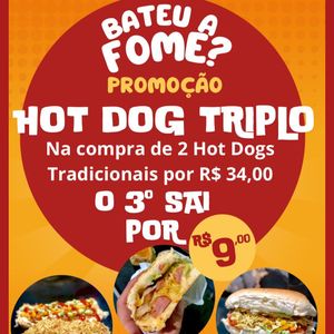 Promoção de hojeNa compra de 2 hot dog tradicional a R$34,00 o 3* hot tradicional sai a apenas R$9,00