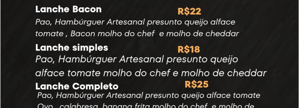 Lanches, porção e bebidas