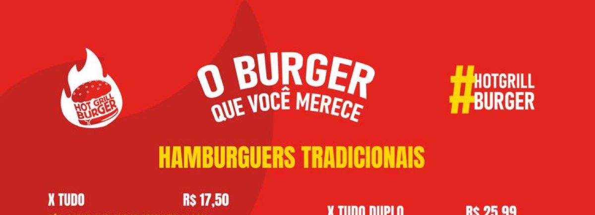 Hot Grill Burger ( Pão, 2 carnes, Queijo Cheddar, bacon e salada)