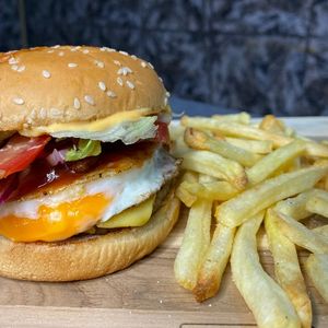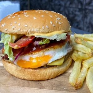 Pão levemente tostado , Carne suculenta, queijo prato derretido + creme de catupiry original,ovo, bacon crocante, alface americano fresco, tomate, cebola roxa, ketchup, molho especial da casa