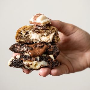 Delicioso cookie crocante por fora, macio por dentro e com aquele recheio que derrete na boca.