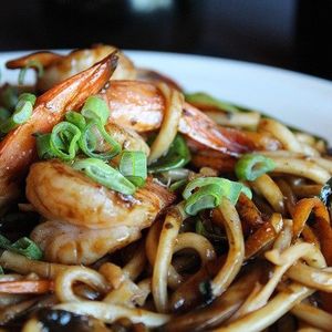 500gr do Yakisoba de camarão: macarrão artesanal refogado com legumes frescos e suculentos camarões, preparado no delicioso molho oriental.