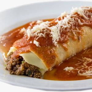 Deliciosa panqueca de carne com massa tradicional acompanhada de arroz e salada fresca. Uma combinação irresistível e balanceada.
