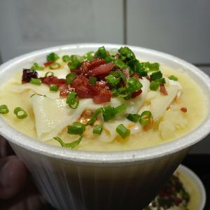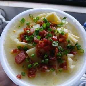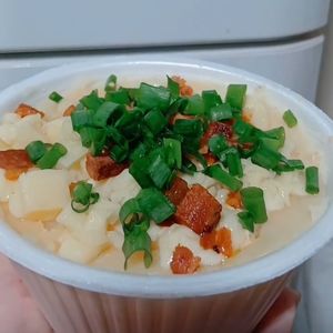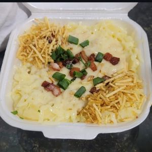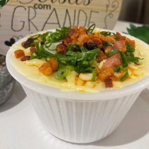 Batata inglesa, strogonoff de frango,queijo mussarela,Requeijão, Bacon, cheiro verde
