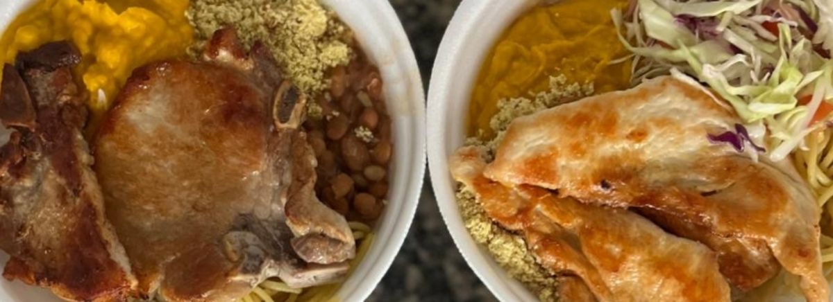 Feijoada completa e bem servida, preparada com pé suíno, rabo suíno, costeleta suína, pernil e linguiça calabresa, garantindo muito sabor e aquele tempero tradicional que todo mundo ama. Acompanha arroz branco soltinho, couve refogada, farofa de cebola crocante e laranja, formando a combinação perfeita para uma refeição irresistível.