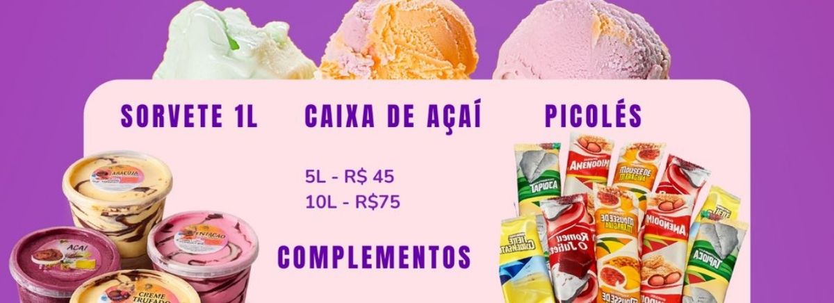 Seja bem vindo! Valores dinheiro ou pix, consulte valores no cartão. Consulte taxa de entrega. Pedidos com somente picolés, entrega a partir de 30 unidades.