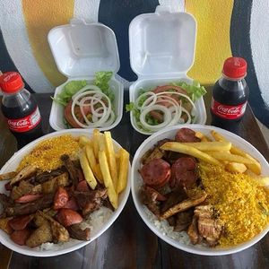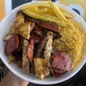 Delicioso mix de misturas, bife, calabresa e filé de frango. Acompanhado de arroz, feijão, farofa, fritas e salada