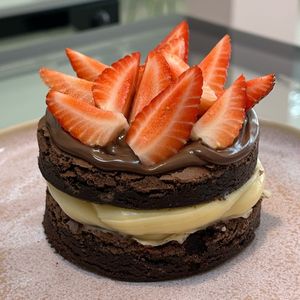 serve até duas pessoas - duas camadas de brownie, ninho, nutella e morango