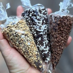 Creme base de chocolate, nossa deliciosa massa de chocolate, com creme de chocolate, intercalado com pedaços de kitkat. Peso aprox. 250g