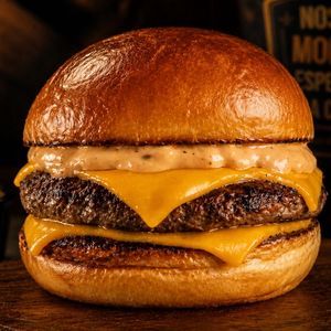 Pão brioche selado na manteiga, 160g de Carne , Duas Fatias de Cheddar e nosso molho especial da casa.