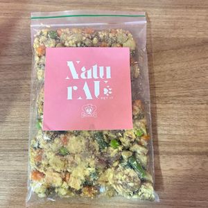 Alimentação natural composta por: Filé de frango, ovo, batata inglesa, cenoura, ervilha, vagem, iogurte natural, fígado de frango, açafrão e linhaça.
