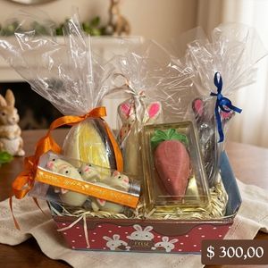 Essa cesta contém 2 ovos Coelho 1 caixa de bombom Coelho 1 cenoura trufada 1 ovo 6 fatias (Valor de acordo com os itens) Mas você pode montar sua cesta com os itens que desejar (valores diferentes) Basta nos informar no WhatsApp LEMBRETE: SOMENTE POR ENCOMENDA COM AO MENOS (1 DIA) DE ANTECEDÊNCIA 67 99192-4208