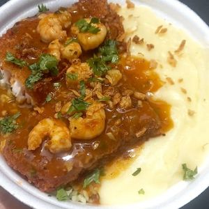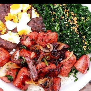 Delicioso Escondidinho de Carne seca com aipim com arroz, feijão e salada