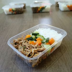 Uma marmita equilibrada, leve e prática para o dia a dia. Frango desfiado bem temperado, arroz soltinho e legumes (cenoura, chuchu e vagem) no vapor finalizados com azeite. ⏱️ Pronto em cerca de 10 minutos no micro-ondas. Porção aproximada: 300g