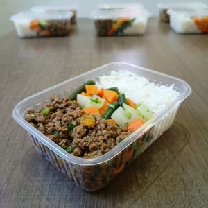Carne Moída com Arroz e Legumes